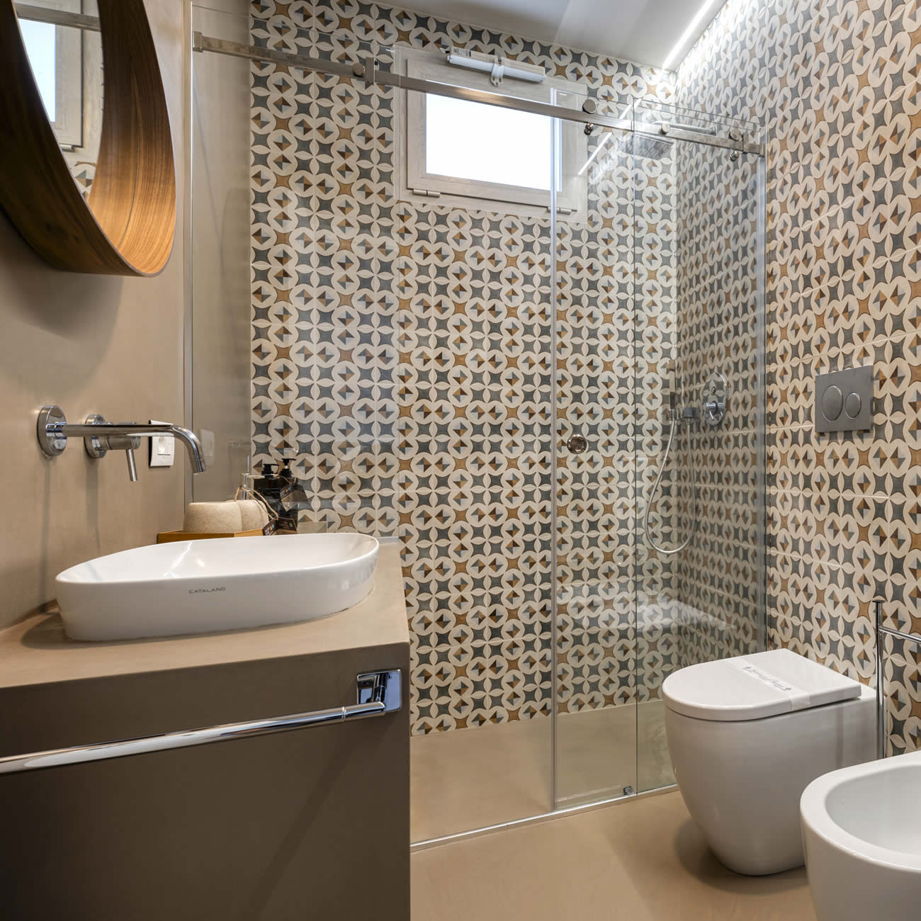 Un comodo divano letto offre uno spazio ideale per rilassarsi e, all'occorrenza, può essere trasformato in un pratico letto aggiuntivo. Una porta scorrevole consente di creare una stanza separata, garantendo maggiore privacy quando necessario.