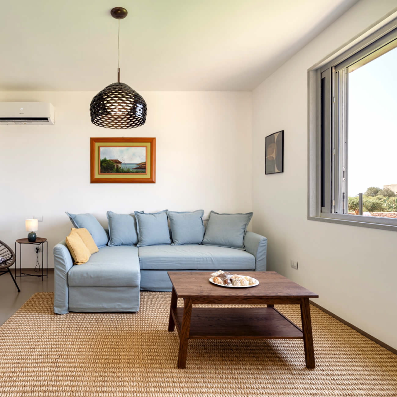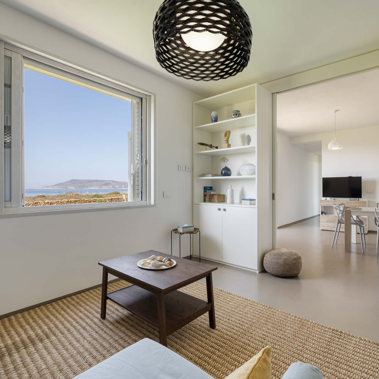 Il soggiorno di Villa Zabbara è un connubio perfetto tra stile e praticità, arredato con mobili dal design moderno che donano un'atmosfera accogliente e sofisticata.